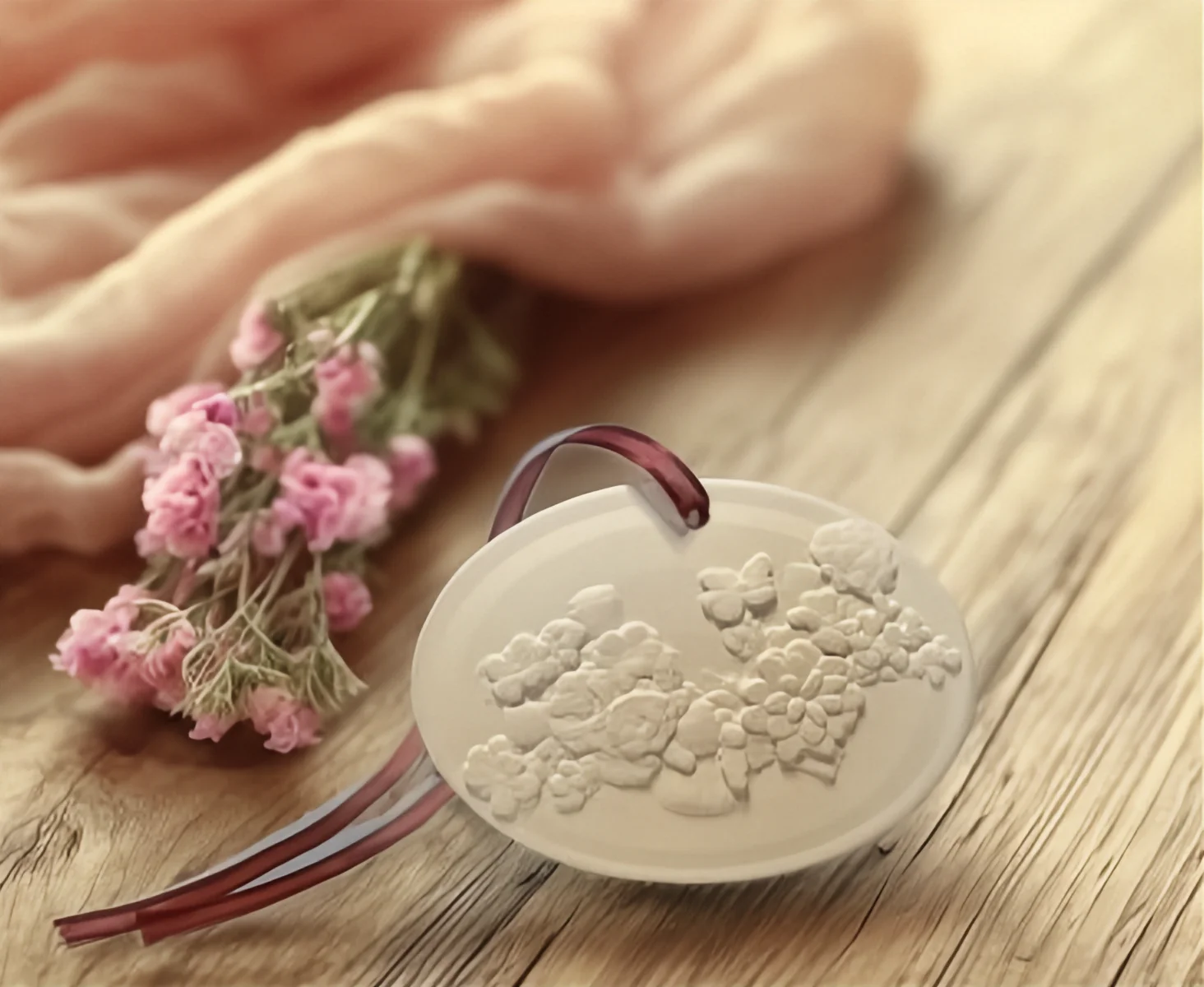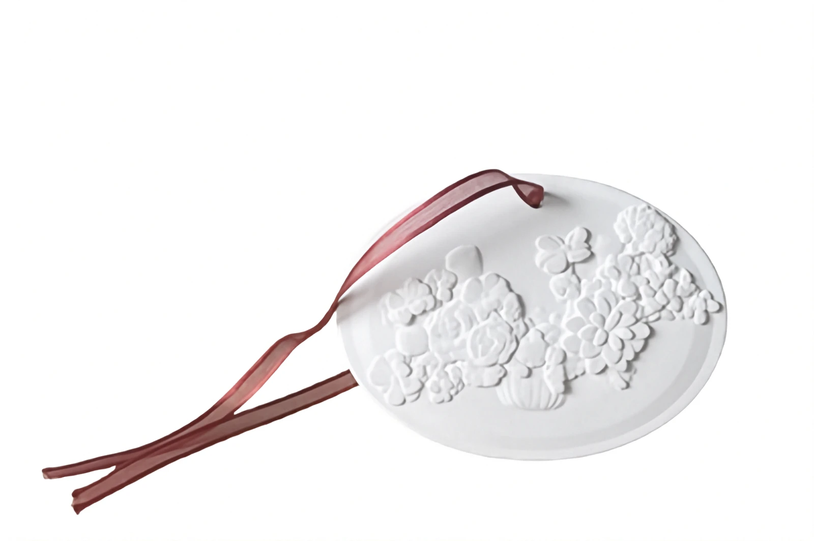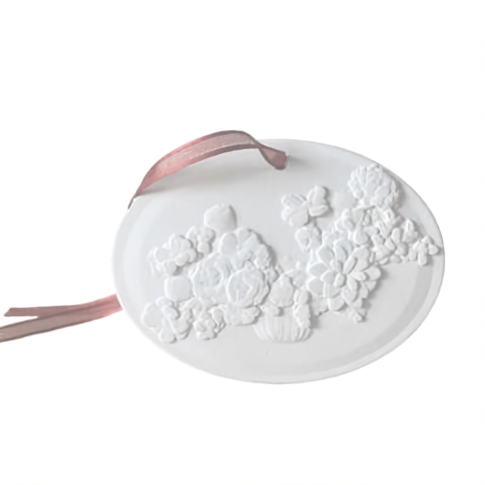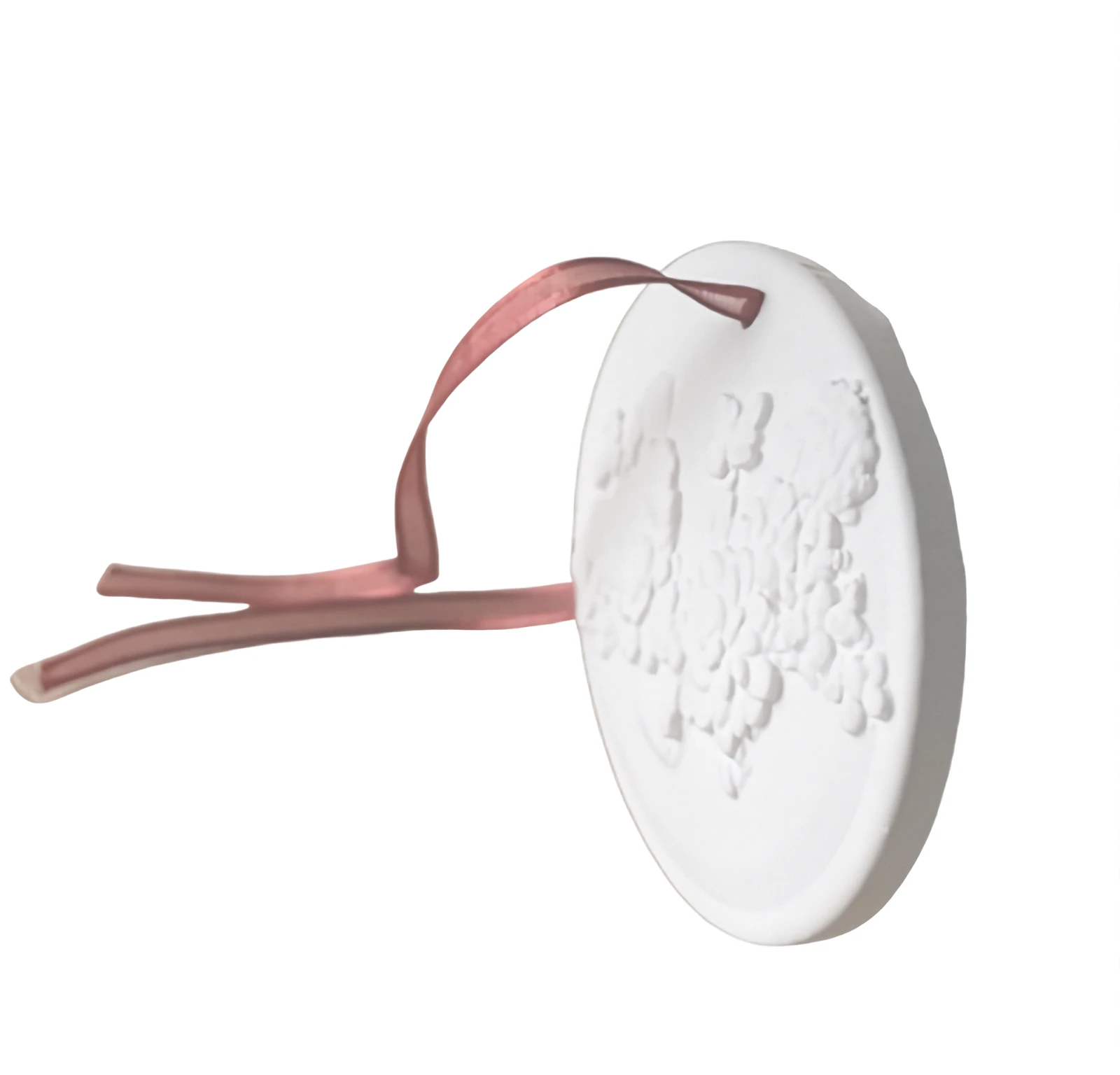 吸水性のある半磁器土を高温焼成して製造された吊り下げタイプのアロマストーンです。アロマオイルやアロマスプレーを吹き付けることで香りが楽しめます。クローゼット、お手洗いなどに吊り下げてご使用ください。精油が染み込んだ状態で家具・衣類・壁紙などに触れると変色・変質の原因になるためご注意ください。また、水を吸水・保水するため、水洗いはお控えください。