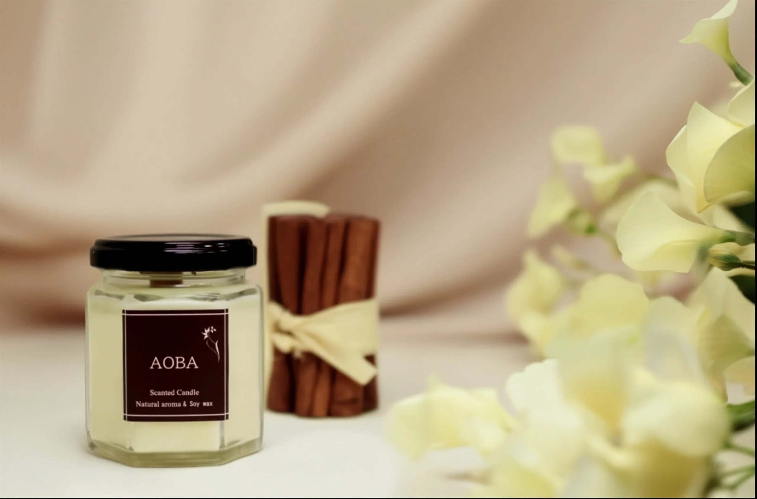アロマキャンドルの主成分であるロウには、大豆を主原料とした天然植物性ワックス(ソイワックス)を使用しており、ソイキャンドルとも呼ばれます。 石油製品にはない大豆独特の柔らかくクリーミーな質感とほんのり甘い香りが特徴です。また、石油由来のワックスに比べて煙やススがでにくく、低温でゆっくりと燃焼します。