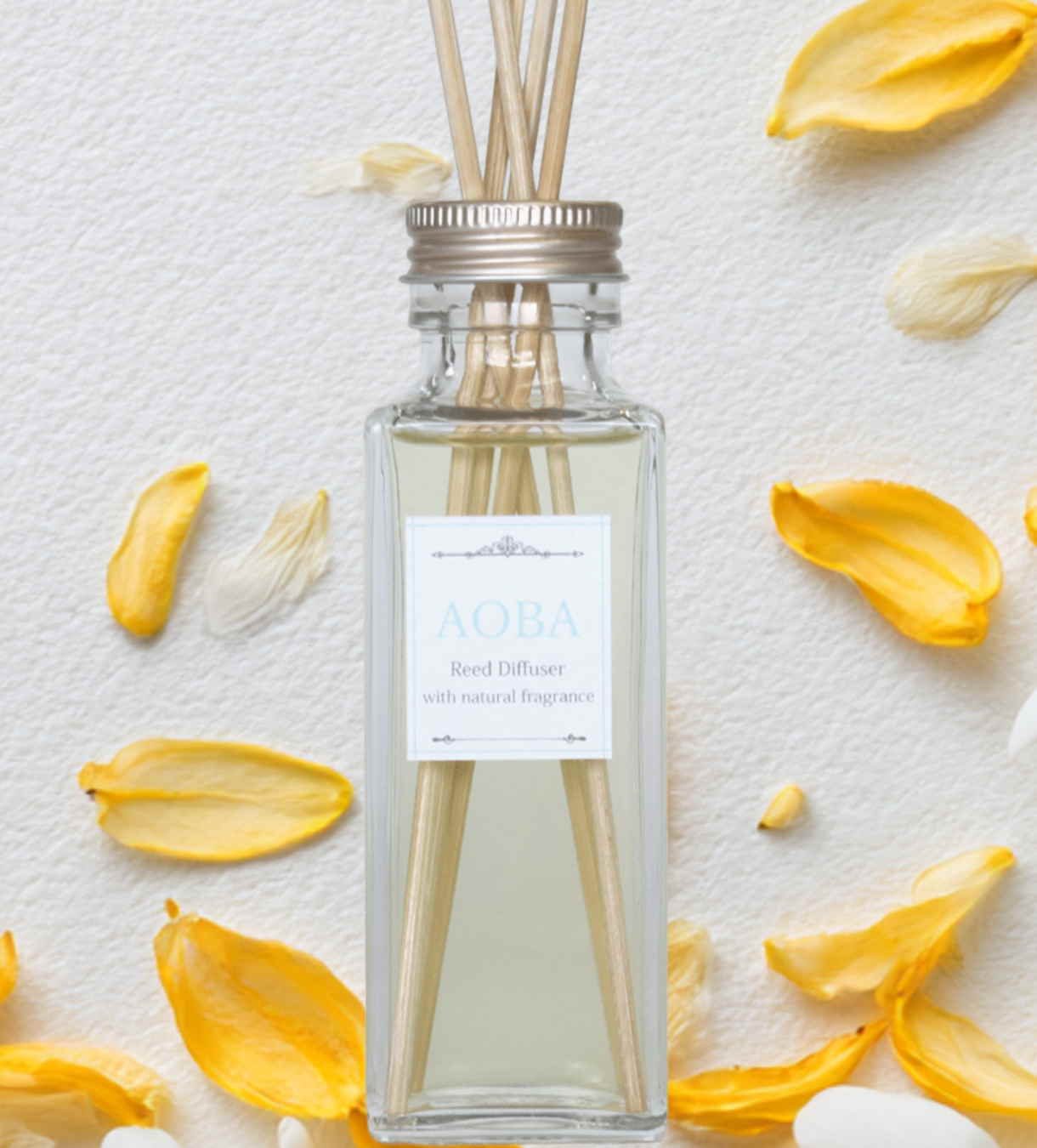 ガラス製リードディフューザー瓶100mlとスティック5本のセットです。同封してあります穴開きキャップに付け替えてご使用ください。植物から抽出した精油や植物の香り成分を分離させた植物性香料で調香しています。